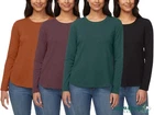 Kirkland Signature Ladies' Long Sleeve Slub Tee 100% Cotton Curved Shirt-tail Hem Long Sleeves Features: Kirkland Signature™ Colors: Green (Green/Black), Purple (Purple/Orange) Soft hand feel Relaxed fit Scoop neckline Slub textured fabric Made in Vietnam Content: 100% Cotton Approximately 206 GSM Midweight Sizing: Sizes: XS - 3X Size Conversion: XS = 2 | S = 4-6 | M = 8-10 | L = 12-14 | XL = 16 | XXL = 18 | 2X = 20 | 3X = 22 Model is 5'9" wearing size Small Color & size subject to availability Care Instructions: Machine wash in cold water Tumble dry low Note: The digital images we display have the most accurate color possible. However, due to differences in computer monitors, there may be variations in color between the actual product and your screen.