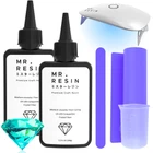 💜【ULTRA CLEAR】 Mr Resin UV Resin, boasts unparalleled clarity and transparency. Watch your creations come to life with crystal-clear perfection every time you use this premium resin. 💜【VERSATILE】 Whether you're a seasoned resin artist or a beginner crafter, Mr Resin UV Resin offers endless possibilities. Use for: Clear Keychains, Crystal Keychain making, Jewelry Glue, Jewelry Making, Glass Glue, Tumblers, Coasters, Resin Decoration and even for Plastic welding and your Fly Tying Kit! 💜【RAPID CURING】 Experience the fastest curing times Mr Resin UV Resin. Its advanced formula ensures rapid curing under a resin curing light or UV light, allowing you to efficiently complete your projects in no time. 💜【BUBBLE-FREE】 Achieve professional-grade results effortlessly with Mr Resin UV Resin's bubble-free formula. Enjoy smooth, flawless surfaces without the hassle of trapped air bubbles, ensuring a pristine finish every time. 💜【TRUSTWORTHY】 Trust in the reliability and quality of Mr Resin UV Resin for all your resin crafting needs. Made with premium materials and backed by rave reviews, this clear UV resin is a must-have for any artist or DIY enthusiast. 💜【FRIENDLY CUSTOMER SERVICE】If you have any questions or issues regarding the Resin kit please do not hesitate to send us a message through Amazon. We typically reply within (1) business day. Product Description What is UV resin, and how does it differ from epoxy resins? UV resin is a type of resin that cures quickly when exposed to ultraviolet light. Unlike epoxy resins that may require longer curing times and heat, UV resin solidifies rapidly under UV light, making it a more convenient option for smaller projects. What can I create with UV resin? The versatility of UV resin allows you to create a wide range of items, including jewelry, coasters, ornaments, keychains, and decorative pieces. Its quick curing time and crystal-clear finish make it ideal for intricate and detailed projects. How do I cure UV resin? UV resin requires exposure to ultraviolet light for curing. Using a UV lamp with the appropriate wattage and intensity is recommended. Ensure that the resin receives even exposure to the light source for consistent and thorough curing. Can I mix colors and additives with UV resin? Yes, UV resin is highly customizable. You can mix various pigments, dyes, glitters, and even embed small objects to create unique and personalized designs. Experiment with different additives to achieve the desired aesthetic for your projects. How long does it take for UV resin to cure? Cure time for UV resin varies depending on factors such as the intensity of the UV light and the thickness of the resin layer. In general, most UV resins cure within 1-5 minutes under a UV lamp. Which UV resin is right for you? Mr. Resin Original UV Resin Jewelry Making Keychains & Pendants Doming Rock Painting Polymer Clay Coating Mr. Resin Black label UV Resin Jewelry Making Keychains & Pendants Polymer Clay Coating Fly Tying The video showcases the product in use. The video guides you through product setup. The video compares multiple products. The video shows the product being unpacked.