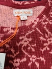 Crafted for comfort and style, the Knox Rose Thermal Top is a versatile addition to any casual wardrobe. This women's XL top features a cozy crew neck and classic fitted long sleeves, perfect for layering or wearing solo on crisp days. Its rich red and burgundy floral pattern adds a touch of elegance to the easy pullover design, making it ideal for a variety of occasions. The blend of cotton and polyester provides a soft touch with just the right amount of stretch, ensuring a flattering fit that moves with you. Easy to care for, this knit top is machine washable, keeping it looking its best wear after wear. Embrace the classic charm and effortless sophistication of this Knox Rose top, a piece that combines thermal warmth with stylish versatility. It is 60% cotton and 40% polyester. It measures approximately 42" in the bust and 24-1/2" in length. It does have a lot of stretch. This is brand new with the tags. I have multiple of these so if you purchase more than 1 I will be happy to combine shipping, just wait for me to send you a correct invoice with the correct shipping cost. Thanks for looking!!