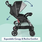 The Kolcraft Cloud Sport Lightweight Travel Stroller, gray, is the ideal stroller for parents looking for something with all the features they need but lightweight and travel-friendly. The Cloud Sport unisex stroller weighs less than 13 pounds, so it's easy to carry, store and transport. It has all of the important full-size stroller features but in a smaller, more nimble design with an ultra-compact fold. This stroller boasts a three-tier extended canopy for maximum UV protection and a peek-a-boo window so your child is visible at all times. The multi-position reclining seat has a five-point safety restraint system that helps keep your child in place, and can fit a child up to 50 pounds. The Kolcraft Cloud Sport Lightweight Stroller has both a child tray and a parent tray for easy storage while you are on the move, plus an extra-large storage basket to keep all your things handy while on the go. Travel-friendly unisex lightweight design Parent tray with 2 drink holders and extra storage area. Large, easy-to-access storage basket to hold your items BPA-free removable child tray with dual cup and juice box holder Convenient 1-hand and self standing fold, ideal for car travel and vacations Multi-position reclining seat offers 5-point safety restraint system and accommodates child up to 50 lb 3 tier extended canopy for maximum UV protection with peek-a-boo window