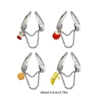 Features: Brand new and high quality Add a touch of edgy to your hair with this Fruit Chain Metal Clip. Stand out from the crowd with its distinctive and unique designs. Crafted from high quality alloy material, this hair clip is durable and resistant to deformation. The intricate craftsmanship ensures a high level of detail in the designs. Suitable for girls, women, children, and even pets, this versatile hair accessory can be enjoyed by people of all ages. Whether it's a party, everyday wear, or any other occasion, this hair clip is a perfect choice. It adds a stylish and trendy touch to your overall look. Express your unique and make a statement with this Hair Clip. Let your hair and stand out from the rest. Specifications: Material: Alloy, Resin Size: approx.9.5cm/3.74in 4 Color and Optional: As choose. Quantity: Pc Package Includes: 1Pc x Hair Clip note: Please allow 0-1cm error due to manual measurement. please make sure you do not mind before you bid. Due to difference between different monitors, the picture may not reflect the actual color of the item.