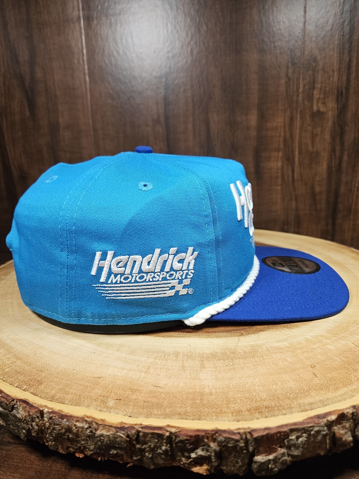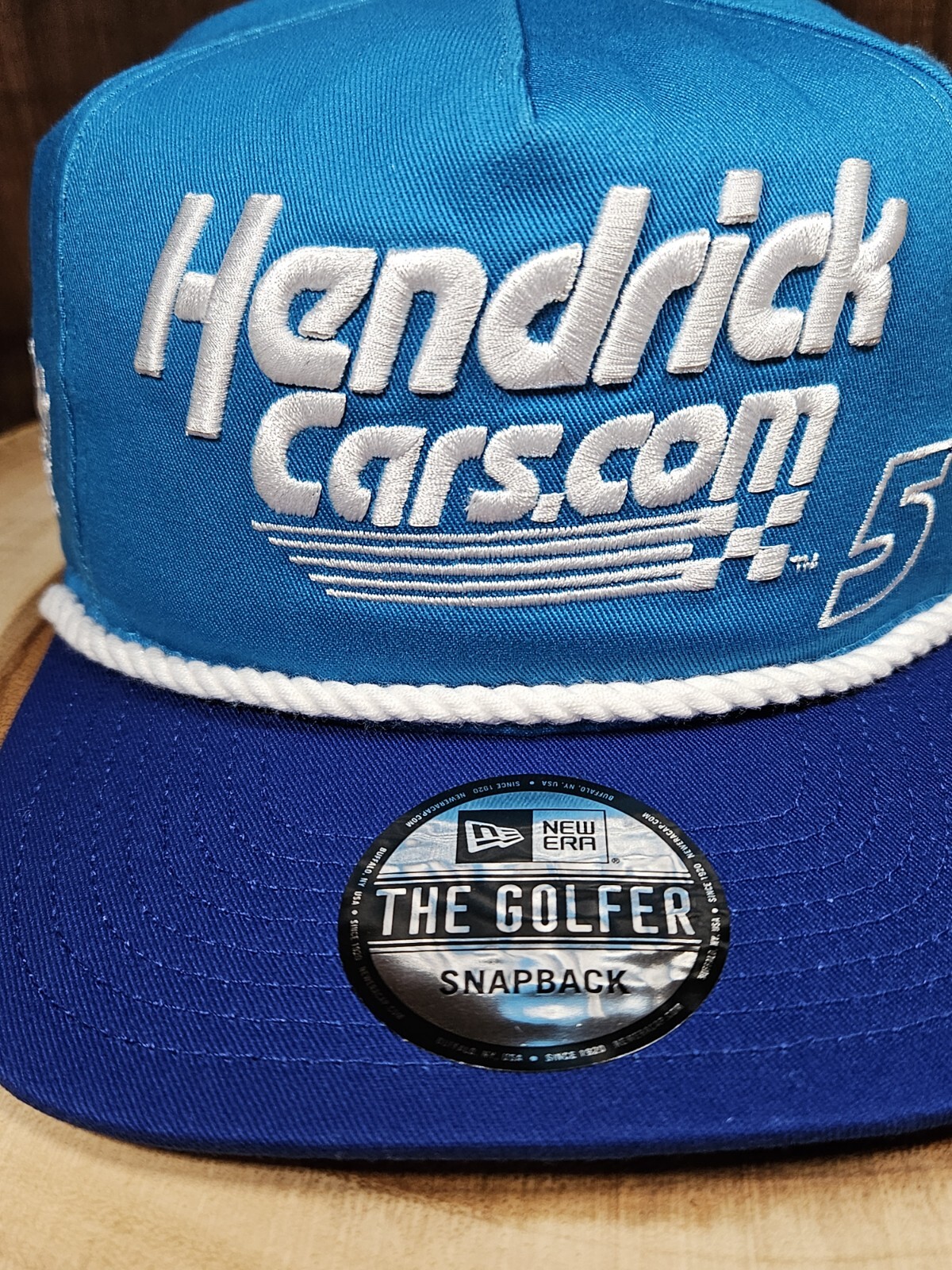 Elevate your style game with this Kyle Larson #5 HendrickCars.com New Era The Golfer SnapBack Hat Cap. Perfect for any occasion, whether it's a casual day out, a party, or even workwear, this blue baseball cap with an adjustable size and snapback feature is the perfect addition to your wardrobe. The hat features a solid pattern and is made of high-quality materials, ensuring durability and comfort. Designed for men, this hat is a must-have for NASCAR fans, streetwear enthusiasts, and sports lovers alike. With its sleek style and NASCAR-themed design, it's the perfect accessory to complete any outfit. Get yours today and elevate your fashion game to the next level!