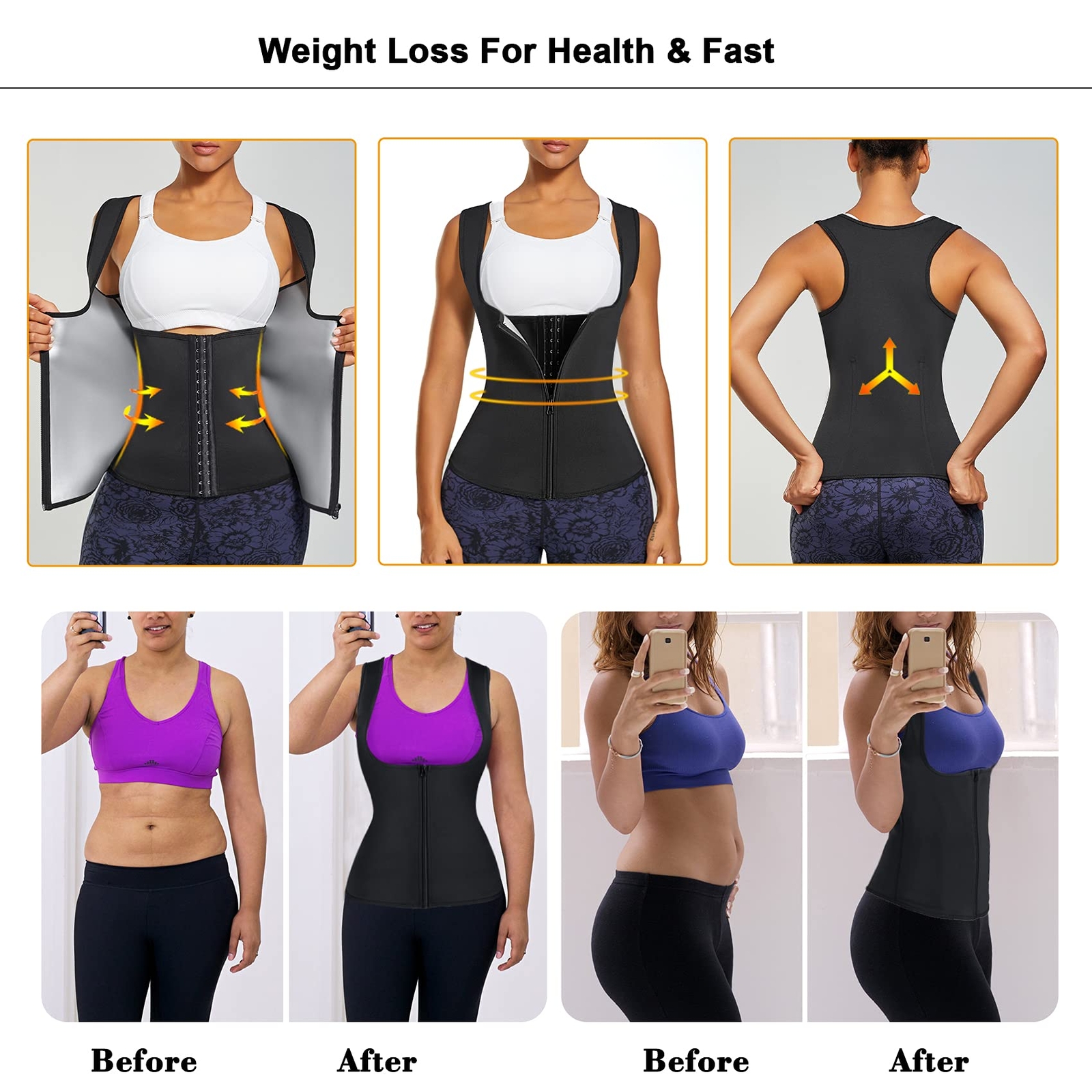 LANCS Sauna Suit for Women Sweat Waist Trainer Zipper Vest Cincher Body Shaper Corset Slimming Workout Tank Tops (Black, Large) EXCELLEENT HEAT-TRAPPING SAUNA VEST: Lancs sauna suits for women is made of high quality silver heat trapping polymer fabric, soft, sturdy, and not bulky. It is comfortable enough to wear most of day. This sauna waist trainer for women could warm up faster, burn extra fat around the abdomen and waist, makes sweat like crazy. Workout with this sweat vest for women, help achieve a healthy slimming goal and have a wonderful shape. 2 in 1 COMPRESSION WAIST CINCHER: Our waist trainer vest for women weight loss with two layer, inside sauna vest, outside zipper sweat vest. This workout vest provide high compress your belly, reduces swelling, flatten the abdomen, it can fits snug for longer torso or short torso. This workout waist trainer corset for women will make you sweat the area for weight or water loss. FIRM TUMMY CONTROL SHAPEWEAR: This sauna sweat suits for women combo hook and zipper. Our sauna vest has a strong zipper, is easy to put on and off, allows you to hide it. 3 different rows and hooks under zipper, you can pick your particular comfort level, the tighter the loops the better it works so you progress your way to getting smaller. The sweat body shaper girdles will give you a sexy natural curve. U-SHAPED PUSH UP BREAST & EXTRA SUPPORT: This waist trimmer for women with special U-type anti-droop design, gives a breast lift while snatching the waist, make your chest more erect and attractive. This waist slimmer vest for women has 2 steel bones on the back, it doesn't dig into your skin like other waist cinchers shapewear. Women workout waist shaper provides back support, relief back pain, improving posture, prevent rolling up during exercise. SWEAT MORE IN WORKOUT: This sauna workout tank tops for women can be drenched while workout, like gym, running, yoga, fitness, cycling, jogging, sports, boxing, hiking. You can wear it under clothing, definitely 5 times your sweat production! Also, this postpartum waist trainer can help postpartum recovery, help maternity body get back to its original shape. Shipping We offer FREE shipping on all orders! We ship within Three business days of payment, usually sooner. We use a selection of shipping services such as UPS, FedEx, USPS etc. We only ship to the lower 48 states, no APO/FPO addresses or PO Boxes allowed. Local pickups and combined shipping options are not provided at this time. Return You can return a product for up to 30 days from the date you purchased it. Any product you return must be in the same condition you received it and in the original packaging. Please keep the receipt. Payment We accept payment by any of the following methods: PayPal Please pay as soon as possible after winning an auction, as that will allow us to post your item to you sooner! Feedback Customer satisfaction is very important to us. If you have any problem with your order, please contact us and we will do our best to make you satisfied. Contact Us If you have any queries, please contact us via ebay. We usually respond within 24 hours on weekdays. Please visit our eBay store to check out other items for sale! Thank you for shopping at our store.