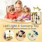 Perfect Learning activity- Fun and unique sensory boards can improve your baby's recognition and sensory activity. Exquisite Sensory toys-Improve children's motor skills and problem-solving abilities. Bring hours of entertainment with endless combinations of buttons, wires and lights. This is a very interactive game, recommended for children from 1 to 5 years old to play. Safe and high quality-Wooden busy board is made of natural wood, smooth corners, completely suitable for children's small hands, to ensure safe and independent use. A great learning toy.-This wooden busy board helps your baby develop fine motor skills, practice hand-eye coordination, distinguish colors and develop intelligence. This sensory toy is well constructed and all the buttons are perfectly sized for toddlers to press easily. Portable Travel toy -I think this baby busy board is a must-have item for kids on road/plane trips. Taking it on the road/on plane trips allows him to focus on his seat and not get bored Toddler Montessori Busy Board - This toy is designed for kids who love switches and LED lights. This wooden toys is set with 10 different switches, each corresponding to a different color or style of LED light.At the same time, this busy board also has a master switch to turn off all the lights with one click to avoid tedious operation.The board also comes with a mirror to keep your child occupied throughout the journey Educational Learning Toys - This sensory board offers a fun and interactive way for toddlers to recognize colors, improve fine motor skills, and enhance problem-solving abilities through hands-on activities High Quality Sensory Toys - Our toddler fidget toys are made of natural wood with smooth edges. All the various buttons, switches, and shifters are securely installed. The busy board with led lights is high quality and very sturdy, ensuring safety for your child. The light is soft and won't hurt children's eyes Fit Size - This product measures 7*6*1 inches.This baby busy board with a mirror for 1 2 3 year olds is suitable for different scenarios, such as at home, on the airplane, in the car, and during travel. It's a perfect travel toys to keep your baby quiet and engaged Best Gifts for Kids - This toddler busy board is the perfect birthday gift for your child. Toddlers can use it to identify different colors and sizes. Designed to turn the boring learning process into a creative and fun one. Please bring your own 2 x AA batteries before use
