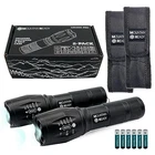 LED Flashlight – Bright, Zoomable, High Lumen Tactical Flashlights with 5 Modes, AAA Batteries and Case Included. The Perfect Gift for Emergencies, Outdoors, Camping & So Much More. Adjustable LED Flashlight: Features a zoomable, high lumen LED light with 5 modes for versatile use. Durable Aluminum Construction: Made from sturdy aluminum with a modern style for long-lasting use. Water Resistant Design: Withstands splashes and rain so it's great for outdoor activities. Includes Belt Clip and Case: Comes with a belt clip for hands-free use and a hard case for storage. High Capacity Battery: Uses 3 AAA batteries for long runtime and quick recharging.
