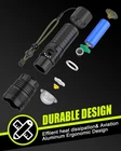SUPER BRIGHT : Our bright flashlights at 10000 high lumens can bring you dazzling brightness. Reaching even 1700 feet away, the light from our LED flashlight can make everything in front of you illuminated and clear, protecting you from darkness and unknown. 5 MODES : To deal with changeable situations, we have designed 5 Modes for our flash light: High Light Mode, Medium Light Mode, Power Saving Mode, Strobe Mode and SOS Signal Mode. Furthermore, our zoomable flashlight is capable to change the focus, getting flood beam or spot beam to widen or narrow the range of the area covered by light. LONG BATTERY LIFE : This super bright flashlight comes with a 5000mAh battery, enough to support 5-10 hours of lighting. Our rechargeable flashlight equips with 4 indicator lights to display the battery power remain. 4 indicator lights are on to indicate that 100% power remains, 3 to 75%, 2 to 50%, and 1 to 25%. Please fully charge the flashlight before using for the first time. DURABLE & SUITABLE : Being extremely durable, our tactical flashlight can keep working during hard rain, waterproof enough to encounter most situations. Measuring 6.5 x 1.7 x 1.4 inches and made of aluminum alloy, these flash lights weigh 8.1oz are outdoor, camping and hiking essentials. STRONG VERSATILITY : With our super bright flash light's diverse modes and trusted quantity, it can be apply on different situations, such as camping, night riding, pathfinding, patrolling, fishing, etc. It can also be used as a power bank to charge your phone and other electronic devices in emergency situations. Product Description 1 MODES 2 INDICATOR 3 WATERPROOF 4 SHOCKPROOF High Lumen Upgraded LED Light Chip Advanced XHP50 LED light chip brings up to 10,000 lumens of light to you. Humanized Design Tactical Power Switch Single switch in the middle makes it easy to operate even in the dark and more convenient to use. Faster Recharge Type-C Recharging Type-C recharging port brings much faster recharging speed. Reliable Accessory Upgraded Rubberized O-Ring Upgraded rubber O-ring design is reliably waterproof, keeping your bulb glowing even in heavy rain. Great Choice Powerful Exquisite Flashlight Powered by 1 18650 batteries (included), you can count on this flashlight in different situations. 1 BRIGHTNESS 2 SWITCH 3 RECHARGEABLE 4 WATERPROOF 5 DISPLAY 1 ZOOM IN 2 ZOOM OUT