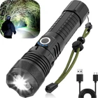 SUPER BRIGHT : Our bright flashlights at 10000 high lumens can bring you dazzling brightness. Reaching even 1700 feet away, the light from our LED flashlight can make everything in front of you illuminated and clear. 5 MODES : To deal with changeable situations, we have designed 5 Modes for our flash light: High Light Mode, Medium Light Mode, Power Saving Mode, Strobe Mode and SOS Signal Mode. Furthermore, our zoomable flashlight is capable to change the focus. LONG BATTERY LIFE : This super bright flashlight comes with a 5000mAh battery, enough to support 5-10 hours of lighting. Our rechargeable flashlight equips with 4 indicator lights to display the battery power remain. DURABLE & SUITABLE : Being extremely durable, our tactical flashlight can keep working during hard rain, waterproof enough to encounter most situations. STRONG VERSATILITY : With our super bright flash light's diverse modes and trusted quantity, it can be apply on different situations. It can also be used as a power bank to charge your phone and other electronic devices. Product Description