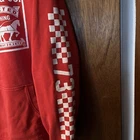 LEVIS- Levis strauss & Co Red Hoodie. 2 Horse Pull Logo, Checkered Design "THE ORIGINAL" red tag. Vintage?? size L. #108 is for listing reference.