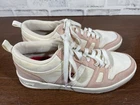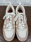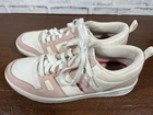 These are Levi's Women's Low Top Fashion Sneakers in a size 10, featuring a dusty pink and white colorblock design. The sneakers are made of canvas with lace-up closure and rubber outsole. They offer cushioned comfort, adjustable fit, and are suitable for activities like tennis, walking, and school. This colorful sneaker is perfect for casual or activewear in all seasons. Good preowned condition with a bit of sole wear, insole wear, and staining as pictured. Please see all photos. For clothing specifically, see photos for all measurements and/or any issues if applicable. Pay close attention to the measurements as the size of the garment may quite possibly be different than the actual measurement(s) due to washing, shrinkage, or stretching as these are used clothes. The size in the title is the size on the tag of the garment. See photos for measurements of actual measurements as they may differ. ALWAYS CHECK THE MEASUREMENTS IN THE PHOTOS. This will remove any questions on measurements as well as always cover the possibility of human error in the listing(s) in the case of a typo or oversight. All clothing and shoes have been washed/cleaned, and comes from a smoke free environment. If shoe trees appear in the photos, they are for photography purposes only to illustrate how the shoes look filled out, and are not included. I am available for questions. I accept or negotiate reasonable offers. Have an amazing day. Thank you.
