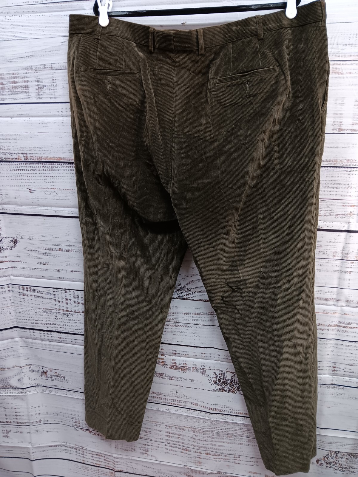 These Linea Naturale dress pants for men come in a size 44 with a brown corduroy fabric in a relaxed fit style. The straight leg design offers a vintage look with features like a zip and button closure, comfortable cotton material, and wrinkle-resistant properties. Additionally, they include a belted waist, pockets, and a 32-inch inseam, making them a stylish and practical choice for any wardrobe.
