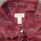 LOGO by Lori Goldstein Button Front Tunic Top Blouse with Peplum Size Small. Fits oversized. Long Sleeves Red and Purple Watercolor Pattern Excellent Preowned Condition! No observed stains or holes.