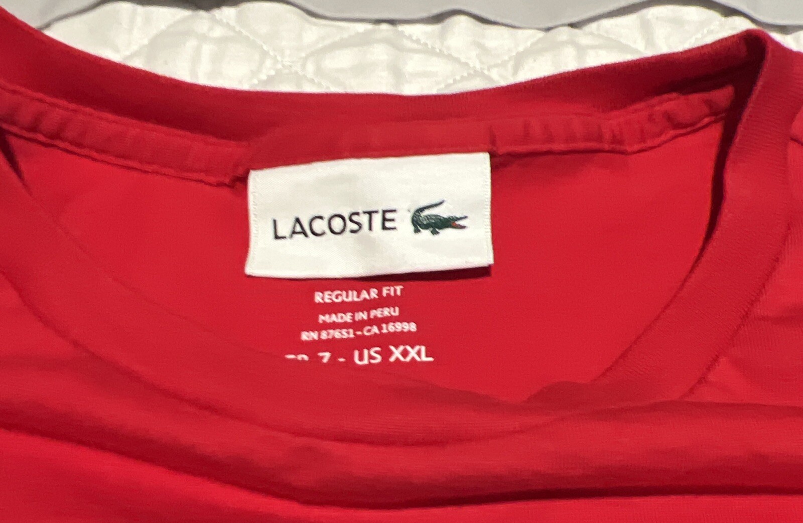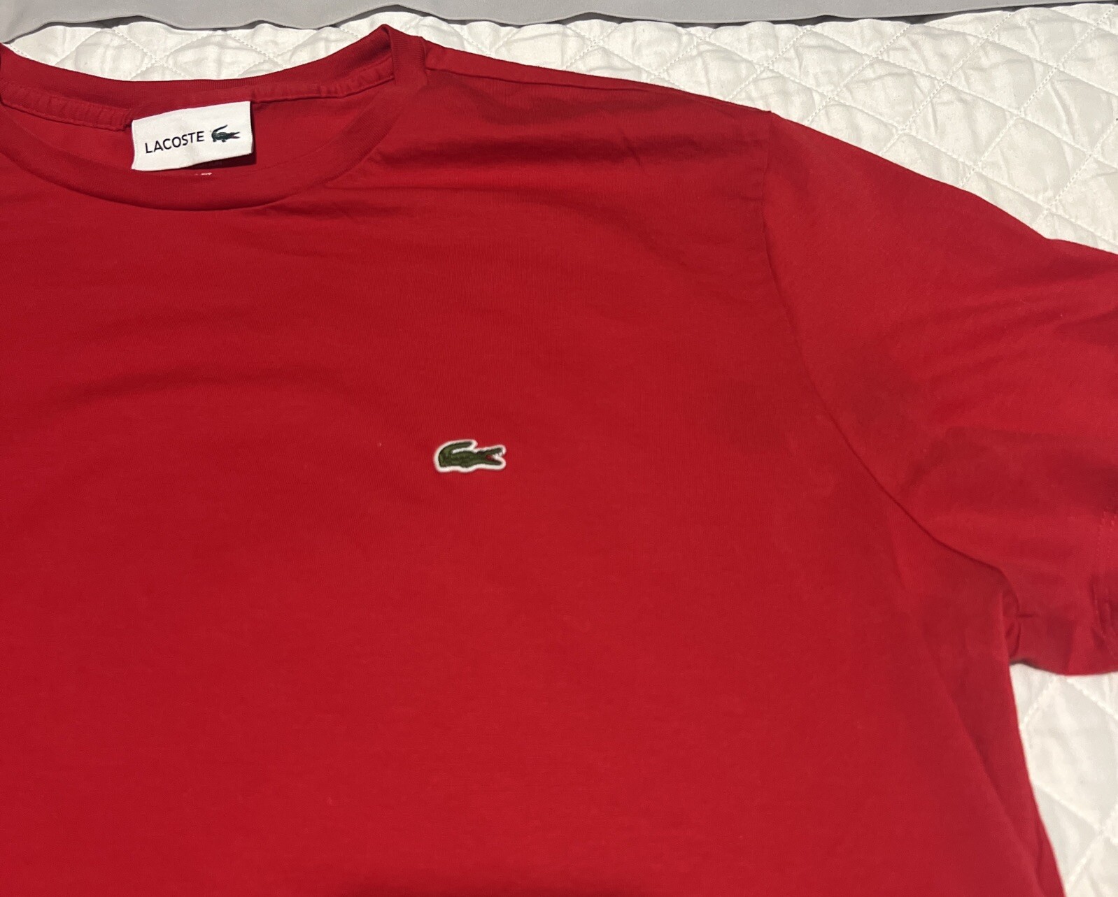 Elevate your everyday style with the Lacoste Men's Red Crew-Neck T-Shirt. Crafted from 100% pima cotton, this short-sleeve tee offers a soft touch and breathable comfort, perfect for any season. Its solid red hue is versatile, making it an ideal choice for a range of casual ensembles. The T-shirt features a classic crew neckline and is adorned with the iconic Lacoste logo for a touch of prestige. Designed to fit regularly, this size 7/XXL garment caters to a comfortable fit. Whether paired with jeans or shorts, this T-shirt is a timeless addition to the modern man's wardrobe.