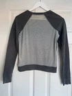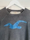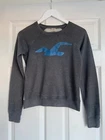 Ladies Hollister grey long sleeved top size XS. Featuring jersey front with printed Logo and fine mesh back, ribbed neck, cuffs and hem. Measures 16.5 inches across the front from armpit to armpit, length approx 20.5 inches from top of shoulder to hemline. Comes from a smoke free home, delivery via Royal Mail, 2nd Class, UK only.