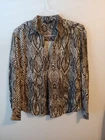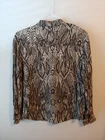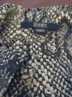 Ladies Seventy Sergio Tegon Long Sleeve Geometric Print V Neck Top Pearl Buttons on cuff. No size listed, but measurements indicate it may be XL. Please review measurements in pictures before purchasing and reach out with questions.