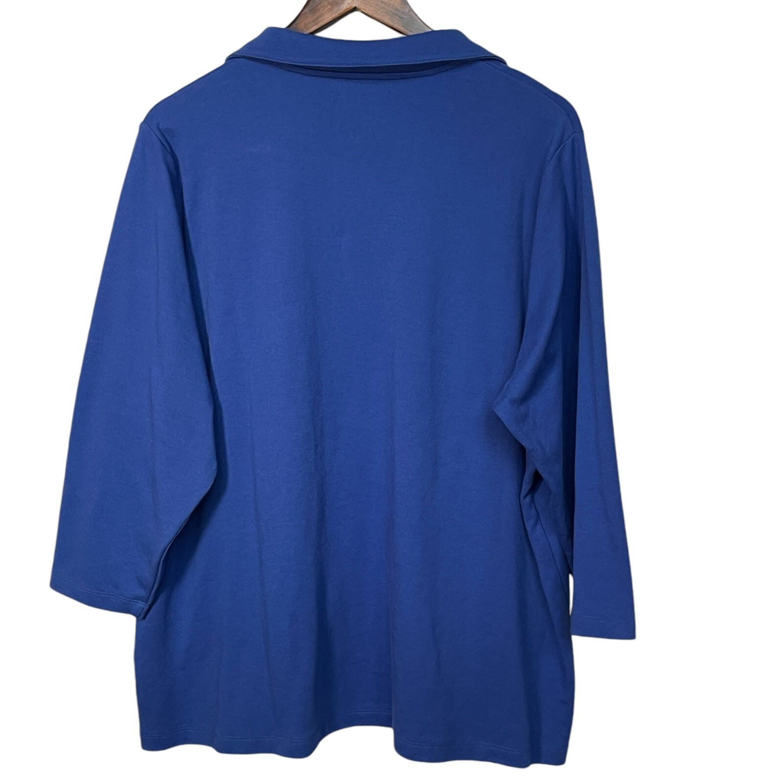 * Lands' End Outfitters Top Women Size 2X Blue Collared 3/4 Sleeve * *Good Pre-owned Condition *Please see photos for approximate measurements (in inches), fabric make, washing instructions, and other notable details. *Purchased items are shipped out next business day.