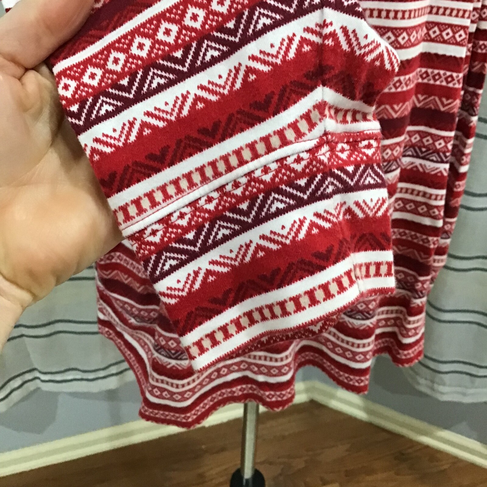 Lands End Women Size 3X Relax Fit Fair Isle Holiday Red Mock Neck Top Stripes