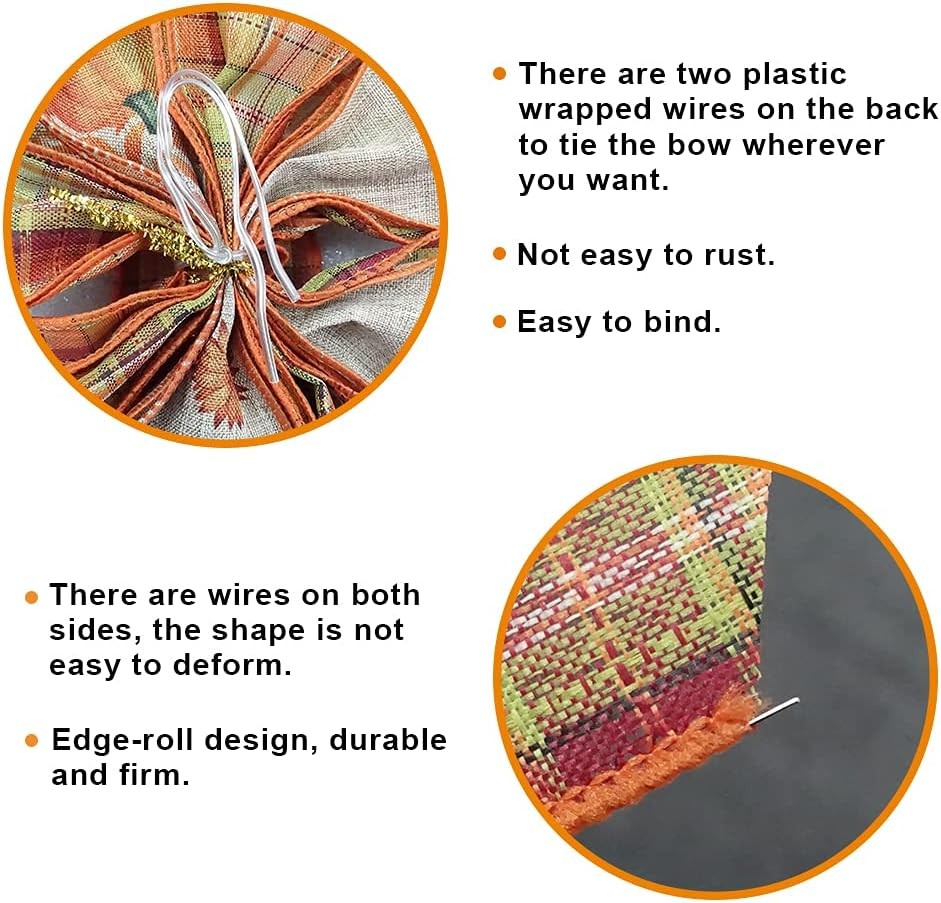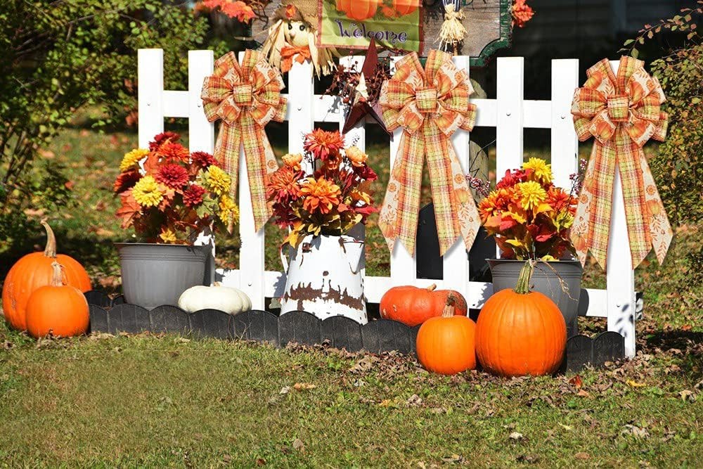 Large Fall Orange Red Plaid Bow Wreath Pumpkin Leaves for Autumn Bow(b) Product Details Package Dimensions: 10.87 x 3.62 x 1.85 inches Item Weight: 1.76 ounces Manufacturer: Belamour Item model number: Bow OYR-Plaid Pumpkin Leaf 【Materia】Fall Orange, Green and Red Buffalo Plaid Pumpkins Wreath Bow is made of high quality burlap ribbons, durable for a long time using. The color is not easy to fade, but machine wash is not recommended. 【Design】Fall Wreath Bow is Composed of Orange, Green and Red Buffalo Plaid patterns of ribbon. Designed with Orange, Green and Red Buffalo Plaid, Pumpkins Leaves, this fall wired edge ribbon bow is full of the joyful atmosphere of fall harvest and can meet the needs of fall harvest thanksgiving holiday decoration. 【Fall wreath bow size】20.87"x 11.42"(L x W). Large burlap bow fit Fall Thanksgiving Harvest wreath bow best choice for decorating. 【Easy to Use】There are two plastic wrapped wires on the back to tie the bow wherever you want. Wires on both sides of the ribbon, so the shape of the bow is not easy to deform. Due to the packing, the bow is folded. We recommend that you straighten the tail of the bow,Tidy up its knot and make it fluffy before you use it. 【Use Widely】You can tie the fall Pumpkin bow to your front door, wall, window, tree, fences, fireplace, stair, etc. And aslo can decorate your Fall Thanksgiving gift box for adding a special touch. Fall Orange, Green and Red Buffalo Plaid Wreath Bow Pumpkins Leaves Bow Tree Topper for Fall DécorPackage Including:1 x Fall Autumn Wreath: Due to the packing, the bow is recommend that you straighten the tail of the bow,Tidy up its knot and make it fluffy before you use it.