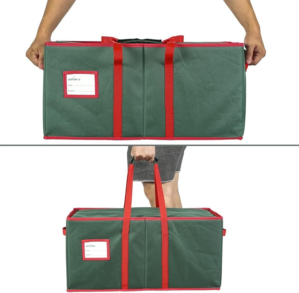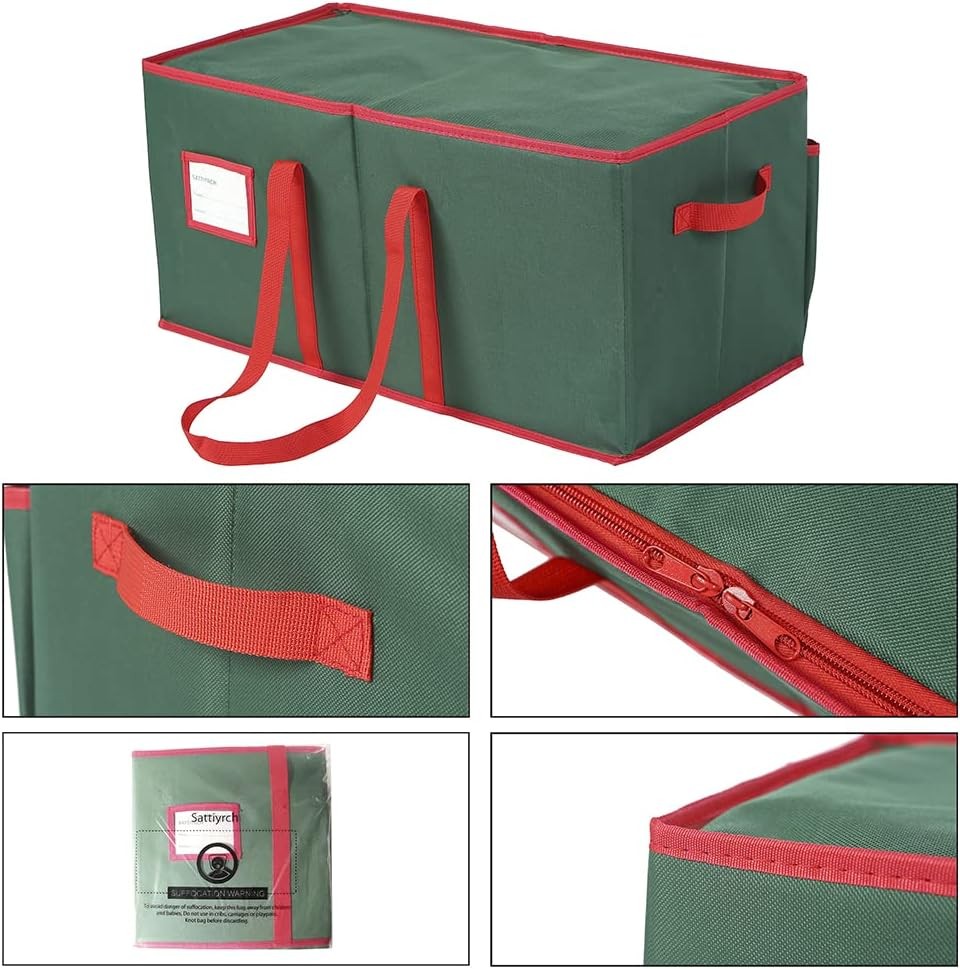 Large Christmas Ornament Storage Box with Dual Zipper 128pcs-3in ball, Green Product Details Brand: Sattiyrch Material: Cardboard Color: Green Special Feature: airtight, stackable, transparent, customizable, shatterproof, Large Capacity Sturdy Load Capacity: 5 Pounds Recommended Uses For Product: Storage Closure Type: Zipper Shape: Rectangular Number of Items: 128 Size: 128pcs-3in ball Number of Sets: 1 Manufacturer: Sattiyrch Item Weight: 3.89 pounds Package Dimensions: 12.99 x 12.83 x 3.78 inches Pattern: General Print Number Of Pieces: 128 Special Features: airtight, stackable, transparent, customizable, shatterproof, Large Capacity Sturdy Batteries Included?: No Batteries Required?: No Brand: Sattiyrch Material: Cardboard Color: Green Special Feature: airtight, stackable, transparent, customizable, shatterproof, Large Capacity Sturdy Load Capacity: 5 Pounds Recommended Uses For Product: Storage Closure Type: Zipper Shape: Rectangular Number of Items: 128 Size: 128pcs-3in ball EXTRA LARGE CAPACITY - With dual-box design, this organizer is large enough to hold up to 128 Christmas ornaments - 3 inches for each. So, you can easily put holiday ornaments in place without having to worry about the space. PROTECTIVE CONSTRUCTION - The storage container is crafted of high-quality 600D canvas, making it breathable and waterproof that can better protect your Christmas ornaments from moisture and dust. This sturdy, reinforced box saves you a good sum of money every year while keeping your dearest ornaments from damage. PRACTICAL STORAGE SOLUTIONS - Strong handles on both sides and top of the box allow you to easily move it to the storage room or living room. There are two additional large pockets on the side for scissors, tape, ribbons, among other items. Besides, a transparent card slot is designed for easy labeling. DOUBLE-SIDED DESIGN - It features 64 separate compartments on each side. Two premium zipper closures with double-stitched seam finish are so sturdy that you won't worry about breakage, allowing you to smoothly zip and unzip the organizer. The dividers are made of high-quality cardboard and the adjustable design allow you to store different shapes of ornaments. Simply reduce or add dividers according to the shape of ornaments you want to hold. It suits a wide range of items and keeps your holiday ornaments safely tucked away when the season comes to a close. EXTRA LARGE CAPACITY - With dual-box design, this organizer is large enough to hold up to 128 Christmas ornaments - 3 inches for each. So, you can easily put holiday ornaments in place without having to worry about the space.