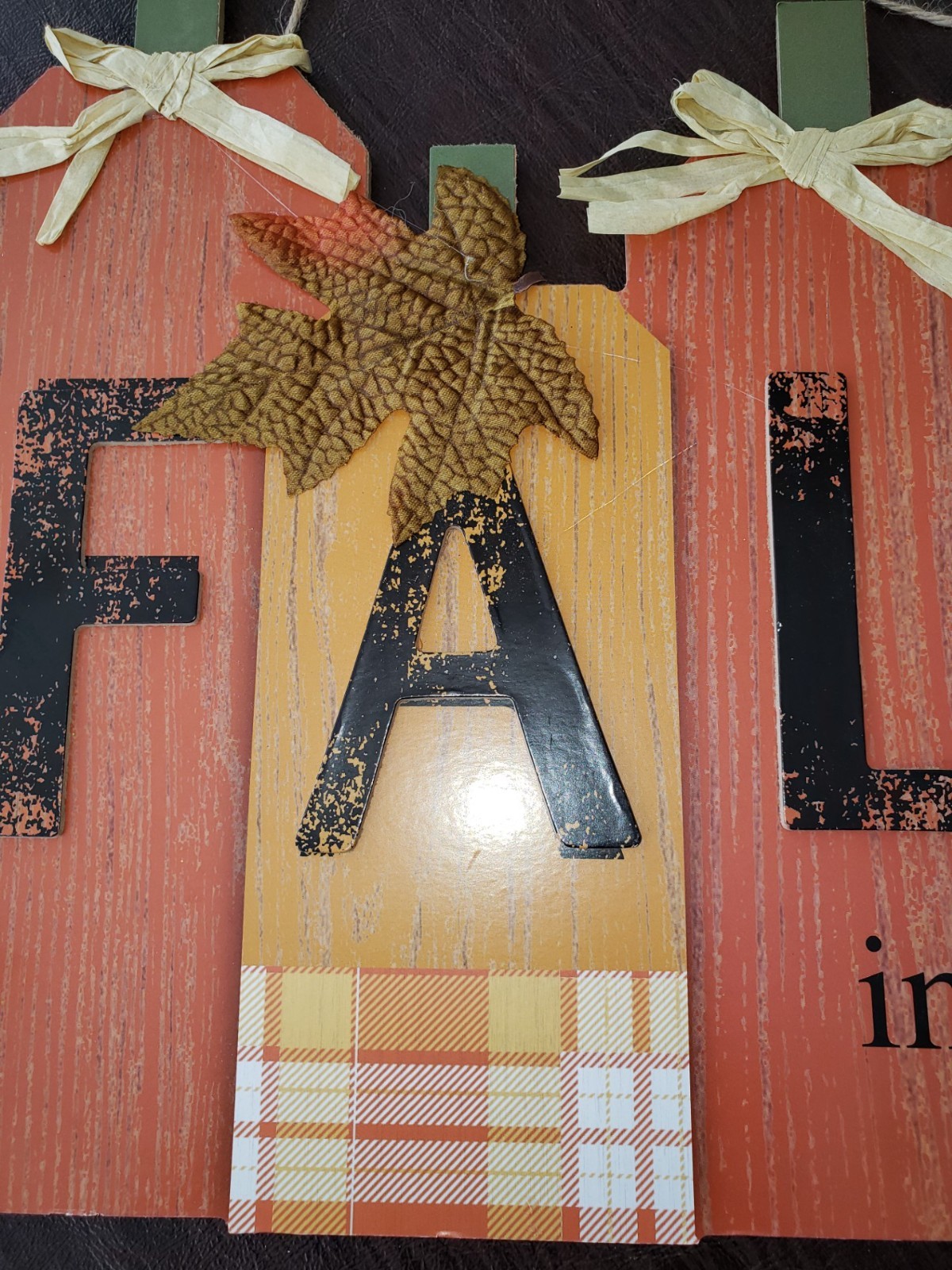 This large rustic fall wooden hanging sign by Wall Decor features a rectangular shape and is designed to bring a touch of fall in love to any room. Made of wood and measuring 12 inches in length and 13 inches in width, this decorative sign is perfect for adding a seasonal and Thanksgiving theme to your home décor. With easy care instructions and a rustic/primitive style, this hanging sign is a beautiful and lasting addition to your entryway or foyer, bringing a cozy and festive atmosphere to your space. Leaf is a metal and FALL lettering is raised.