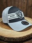 Crafted for the dedicated fan, the Las Vegas Raiders New Era 39Thirty Stretchfit Hat is your go-to accessory for game day or any casual outing. Featuring a sleek silver and black color scheme, this baseball cap embodies the spirit of NFL football and streetwear culture alike. The stretch fabric ensures a comfortable fit for sizes M/L, making it a versatile addition to any wardrobe. Whether you're headed to work, traveling, or enjoying a cocktail party, this hat's solid pattern and clean design allow it to complement a wide range of occasions. From business settings to casual gatherings, the cap's durable construction and timeless style make it an essential piece for any supporter of the Raiders.