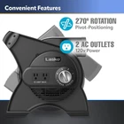 ✅【HIGH VELOCITY AIR STREAM】Powered by 3 fan speeds, this pivoting air mover generates maximum air delivery of approximately 289 CFMs and is best for cooling the hottest spaces in the house, circulating and exhausting stuffy air, and drying out wet carpeting and floors ✅【FUNCTIONAL DESIGN】With it's rugged construction, this pivoting blower fan is Ideal for kitchens, garages, workshops, basements, and more; the lightweight design (7.5 lbs.) and large carry handle make it easy to move this fan from room to room ✅【CONVENIENT FFEATURES】This powerful utility blower fan features two 120-volt grounded outlets for accessory use; the patented 270-degree pivoting action allows you to direct the airflow right where you need it--from circulating air at floor level to exhausting the air from a newly-painted room and anywhere in-between. ✅【SPACE SAVING DESIGN】With an 12.19” x 9.63” footprint, and standing only 12.25 inches tall, this fan easily fits in small spaces and 10-foot power cord and large easy grip handle make it easy to place where air circulation is needed. ✅【BUILT IN SAFETY】The Lasko Pivot Pro pivoting fan is ETL Listed and comes with a circuit breaker and reset button; the 10 foot cord with 3-prong grounded plug makes it a safe choice for a cooling breeze ✅【BUILT FOR POWER】This floor fan features a 120-volt design at .77/1.0 AMPs, 92/100 watts, and 251/289 CFMs on low/high
