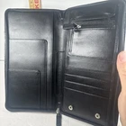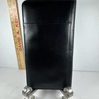 The Levenger First Class Wallet/Organizer is a stunning black leather travel accessory with a solid pattern. It features a detachable pocket wallet, perfect for keeping your essentials organized while on the go. The wallet is designed with a folding style, credit card slots, and a size of 9 inches in length and 5 inches in width, making it an ideal choice for both men and women who appreciate luxury and functionality in their travel accessories.