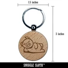 Lazy Pig Lounging Engraved Wood Round Keychain Tag Charm