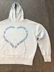 This Le Pere hoodie is perfect for those who want a comfortable and stylish pullover. Made from cotton fleece, this hoodie is designed with a relaxed fit for maximum comfort. High quality fabric and incredibly soft!! The light blue color and graphic print pattern make it a great addition to any wardrobe. The long sleeves and pullover closure make it a great choice for the winter, fall, or spring season. The hooded style and oversized features make it perfect for outdoor activities like hiking or running, and the pockets provide extra storage for your essentials. Heavyweight, high quality fabric!! This designer hoodie is ideal for those who appreciate urban and hip hop fashion, and it is suitable for gym and training activities as well as casual wear. Made in Portugal, this Le Pere hoodie is a must-have for anyone who wants a high-quality, modern, and breathable hoodie. In a smoke free home. No tears or holes. Please see photos for measurements. Message me with any questions you may have. đ