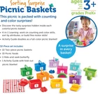 Learning Resources Sorting Surprise Picnic Baskets, Toddler Sorting & Matching Skills Toy, Fine Motor Skills, Preschool Educational Toys, 32 Pieces, Ages 3+ Product Details Product Dimensions: 7.6 x 10.2 x 2.6 inches Item Weight: 1 pounds Country of Origin: China Item model number: LER6810 Manufacturer recommended age: 5 - 7 years Release date: June 30, 2021 Department: Toys & Games|Learning & Education Manufacturer: Learning Resources DISCOVER the preschool sorting surprises within each colorful picnic basket! EXPLORE 10 color-coded plastic counters shaped like fun picnic foods! 4-IN-1 PRESCHOOL LEARNING—counting, colors, sorting, and fine motor skills! ACTIVITY GUIDE doubles as a picnic blanket! GIVE THE GIFT OF LEARNING: Whether you’re shopping for holidays, birthdays, or just because, toys from Learning Resources help you discover new learning fun every time you give a gift! Ideal gift for Halloween, Christmas, Stocking Stuffers, Easter Baskets Stuffers or even for Homeschool. This picnic is packed with counting and color surprises! Kids discover 10 colorful food surprises hidden within the 10 picnic baskets of the Sorting Surprise Picnic Baskets set from Learning Resources. Cast in a rainbow of 10 vibrant colors, these numbered picnic baskets hide 10 color-coded plastic counter manipulatives shaped like everything from avocado to a donut to a bunch of blueberries! There's even an extra butterfly that's ready for friendly games of memory and hide-and-seek! As they play with this learning toy, kids boost their preschool skills through the Sorting Surprise Picnic Baskets' 4-in-1 learning—work on counting and color skills, try sorting by attributes, or build fine motor skills! This set of Sorting Surprise Picnic Baskets comes with a full-color activity guide that doubles as a picnic blanket for imaginative afternoons spent feasting with stuffed animals or imaginary friends!