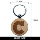 Letter C Uppercase Fun Bold Font Engraved Wood Round Keychain Tag Charm