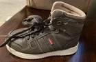 Please see all pictures. Very minor wear on bottom. Shoes are in great condition and ready or fall and winter. These Levi's baby shoes are perfect for any occasion, whether it's for travel, activewear, parties, casual outings, or workwear. The shoes are made of a blended fabric material with a faux leather upper and a synthetic lining. They feature a lace-up closure for a secure fit and a high-top shoe shaft style for extra support. The shoes are available in a size 10 US and 10 UK, making them suitable for unisex babies and toddlers. They come in a solid brown color with accents of lace and logo. The shoes have arch support, cushioning, and are comfortable to wear, making them perfect for gym and training, walking, cycling, school, dance, driving, basketball, fishing, hiking, running, and jogging.