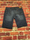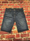 Levi's 502 Tapered Fit Denim Black Jean Shorts for men in size 33 with a distressed dark wash. These vintage-inspired shorts have a regular fit, high rise, and zip closure. Made from a cotton blend fabric, they feature a classic 5-pocket design with belt loops. The shorts have a 12-inch inseam and are designed with a Western, USA, and Rodeo theme.