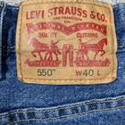 For Sale: Levis 550 Shorts Men's 40 Blue 9.5 in Inseam Work Casual Rugged American Denim Please check photos carefully for details/measurements. Measure your favorite garment and compare. * May be wrinkled upon arrival due to packaging. * This item has been cleaned per eBay policy. We welcome questions and offers! Thank you for taking time to view and consider this item!