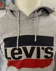 Levis Hoodie Mens Grey Pullover Hooded Sweatshirt Logo Spell Out Pouch Front Pocket Long Sleeves !00% Cotton Size Small Pit to Pit - 21", 53.5 Cm's Good Condition - Please see all photos as part of the description.