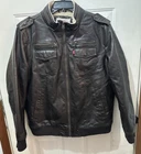 Good preowned condition. Size XXL. This Levi's Levi Strauss & Co jacket is a must-have for any outdoor enthusiast. The brown bomber jacket is made of 100% polyurethane with a faux fur lining for added warmth and comfort. It features a full zip closure and zipped pockets for convenient storage. The jacket is designed with moisture-wicking and breathable features, making it perfect for any outdoor activity. It comes in size XXL and is suitable for regular-sized men. The jacket is accented with a zipper and is ideal for those who love the outdoors.