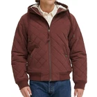 Levi's Men's Diamond Quilted Hoody Bomber with Sherpa Lining Burgundy XL , 2XL - New with Tags Featuring a quilted design, sherpa lining, and a hood with adjustable drawstrings. Made of 74% Nylon and 26% Cotton, it has a full zip closure, ribbed cuffs and waist, and two front pockets with snap closure. This mid-length jacket in XL or 2XL sizes is machine washable, with polyester insulation and one inner pocket. NOTE: Please see the images to verify your purchase. Color may differ slightly due to lighting and screen quality. From a smoke-free, pet-free home. Please contact us if you need additional images or information to make your purchase. If you are happy with your transaction, please leave us a Positive Feedback. If you have any problems with your order, please contact us.
