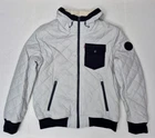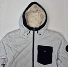 Levi's Men's Diamond Quilted Sherpa Lined Bomber Hoody Jacket Ice Size M - New With Tags In Ice color is a stylish and functional mid-length jacket perfect for travel, casual wear, or workwear. Made of nylon with a polyester lining, this bomber jacket features a quilted design, elastic waist, hood, and pockets for added convenience. The jacket is insulated with polyester and has a zip closure for easy wear. The size is Medium, and it is machine washable for easy maintenance. Perfect for those looking for a colorful and practical outerwear option. NOTE: Please see the images to verify your purchase. Color may differ slightly due to lighting and screen quality. From a smoke-free, pet-free home. Please contact us if you need additional images or information to make your purchase. If you are happy with your transaction, please leave us a Positive Feedback. If you have any problems with your order, please contact us.