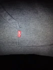 The Levi's Men's Long Sleeve Hoodie Sweatshirt in size XL and Long Sleeve Shirt in size L features a vintage style with a graphic print logo on a gray cotton fabric. This pullover hoodie has a slim fit, hooded neckline, and pockets, making it suitable for all seasons. The design incorporates a hipster, retro theme with a nod to classic American college style, perfect for casual wear or gym activities.