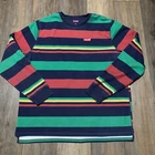 This Levi's sweatshirt is a must-have for anyone looking for a comfortable and stylish piece of clothing. It features a multi-striped pattern in green, blue, red, and yellow, which gives it a retro look. The sweatshirt has long sleeves, a crew neck, and a relaxed fit, making it perfect for casual wear. The fabric is knit and machine washable, ensuring that it is easy to care for. The sweatshirt is made in Vietnam and is available in 2XL size. It is ideal for men who want to add a touch of retro to their wardrobe.