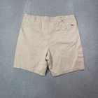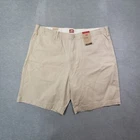 These Levi's men's shorts in size XL feature a solid beige color with a chino style and a flat front design. They are made of a comfortable blend of spandex and cotton with stretch properties for ease of movement. The shorts have a high rise waist of 39 inches and a regular fit, providing a casual and comfortable option for everyday wear. The zip closure and new with tags (NWT) condition add to the appeal of these versatile and stylish shorts.