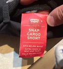 Get ready for summer with these Levi's Snap Cargo Shorts in black. With a size of 30 inches and a regular fit, these shorts are perfect for casual occasions. Made of a comfortable knit fabric, which is a blend of polyester and cotton, these shorts feature a flat front and a high rise of greater than 12 inches. The shorts come with a belt and cargo pockets, making them functional and stylish. The zipper and Levi's logo accents add a touch of American classic to the design. These shorts are machine washable and have a solid pattern that is perfect for any season, be it summer, fall, or spring. Order now and add these versatile shorts to your wardrobe. These shorts are in new and unworn condition with original tags. Please see ALL photos for a better idea on condition, any measurements, or details to the shorts.