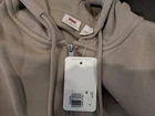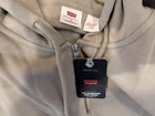 This Levi's sweatshirt in beige features a full zip closure and a hood. Made of cotton blend fabric, it has the Levi's logo embroidered on the front and a red tag detail. With a standard fit, this unisex sweatshirt in size medium is machine washable and suitable for winter, fall, and spring seasons. Perfect for activities like walking, golf, skateboarding, hiking, and running. Brand new, still in original packaging. Look at the pictures before buying. Feel free to message me if you have any questions. Original price $59.50. So this is an incredible deal.