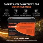 CHARGING SUGGESTIONS D C Charge Voltage: 14.4V-14.6V DC Charge Current :5A- 100A LIGHTWEIGHT&VERSATILE WERCHTAY 12V 100Ah lithium battery is compact in design, high energy density, small size and light weight. Easy to use and transport. Its weight is only 10.4kg. With higher energy density and at least 1/2 the mass of lead-acid batteries, lithium batteries are the perfect upgrade to any 12V deep cycle battery and are the best choice for many applications such as fishfinders, ice fishing, camping, solar energy systems, home alarm systems and electric scooters. We recommend using a dedicated lithium battery charger to charge the battery! LONG LIFE& DEEP CICYLE WERCHTAY Lithium Iron Phosphate (LiFePO4) battery can be recycled up to 4000~15000 times and provide up to 10 years of service life. Because of its safety and stability, LiFePO4 battery can perfectly replace the traditional lead acid battery. This model uses prismatic LiFePO4 cells with better stability, higher energy density, and lighter weight, making the batteries good enough at high temperature performance, high power output, low self-discharge rate. SAFE AND ENVIRONMENTALLY FRIENDLY Made from 100% safe, nontoxic, not hazardous energy, WERCHTAY LiFePO4 battery has higher chemical stability, it is not prone to thermal runaway and will not overheat or catch on fire even if punctured. With no acid in the battery, you're able to safely mount in any position. BUT please read the user manual carefully before using, don't hesitate to call us if you have any questions about the battery. AUTOMATIC BMS AND LOW TEMPERATURE CUT-OFF The unique built-in battery management system (BMS) of our products lithium battery can protect it from overcharge, deep discharge, overload,overheating and short circuit, and low self-discharge rate.Our BMS has a high temperature disconnect function. When the internal temperature of the battery reaches 75℃ ( 167°F ) it will automatically disconnect to protect the battery.With overcharge and over discharge protection functions, when the overcharge voltage exceeds 15V or the over discharge voltage is lower than 8.8V, the battery will automatically disconnect.Our recommended charging voltage and discharging voltage are 14.6±0.2V and 10v±0.2V, respectively.If the charging voltage is lower than 13.8V, the battery power (with a deviation of 1-2%) cannot be fully charged. 5-year Warraty WERCHTAY provides a five-year warranty for its battery. Our service team provide professional information and services, and respond quickly to solve problems in a timely manner. We will help analyze the customer's problems within 24 hours, help solve the problems, recover the battery usage and introduce the best use method WERCHTAY LiFePO4 batteries are designed for boats, home off-grid charging, camping and outdoor activities. They can be cycled 4,000-15,000 times and have a life expectancy of up to 10 years. Due to their safety and stability, LiFePO4 batteries can completely replace traditional lead-acid batteries. Its weight is only 10.4kg, and this model adopts prismatic lithium iron phosphate battery with better stability, higher energy density and lighter weight, which makes the battery with high temperature resistance, high power output and low self-discharge. If you need to be interested in our products, welcome to contact us at the first time! Shipping About us Payment Ruturns Contact us Shipping Please read for your own benefit and understanding on our shipping items. All the items will be dispatched to you within 2 business day. The pacakge you can tracking on the Fedex, UPS. Purchase price do not cover any applicable tax or duty that might be charged by customs ,buyers are responsible for such charges. If you have not received your package as our declaring in description please contact me before you want to leave feedback we can refund money or resend item as your choice. For the vast majority of orders, we will ship within 24 hours of your payment. Please be patient and we'll timely update order status for you. Each product has shown our hearts to you, and we believe that our products will not disappoint you for your patience. About us Welcome to our eBay store. As a leading and emerging company in manufacturer and exporting business, we are specialized in Business and Industrial Products, Sporting Goods, Pet Products, Home and Garden products for more than 10 years. We believe that it is our vision and mission to provide innovative products with best service and competitive price to satisfy you. Our goal is to make sure that you can find exactly what you are looking for and make it easy for you to place your orders. Payment Payment should be completed within 4 (Four) days of auction closing. Or unpaid dispute will be filed for closing auction. We will leave a positive feedback immediately after payment is received. We appreciate a positive feedback as much as you do. If for some reason there is any issue with the purchase, please contact us prior to leaving feedback, we will be glad to work together and provide a satisfying solution. Ruturns All of our items are backed with a 30-day return policy. We ensure all our items are new and in excellent condition prior to shipping. In case you receive the item that is not to the standards above, please contact us via e-Bay messages. All returns must be in new original condition as received and should be shipped with delivery confirmation Please note that all returns must be pre-approved by us. Unauthorized returns will not be accepted. If you need to return, please check twice to confirm the item not work and contact our customer service representative, let us know the detailed problem and send us some pictures for confirmation. We ONLY accept returns with original package. Please make sure that item has NO man-made sabotage. Used items will not be accepted for return. Contact us We will reply message or E-mail in 7-10 hours Our working time : M onday - Sunday 9:00am-22:30pm (