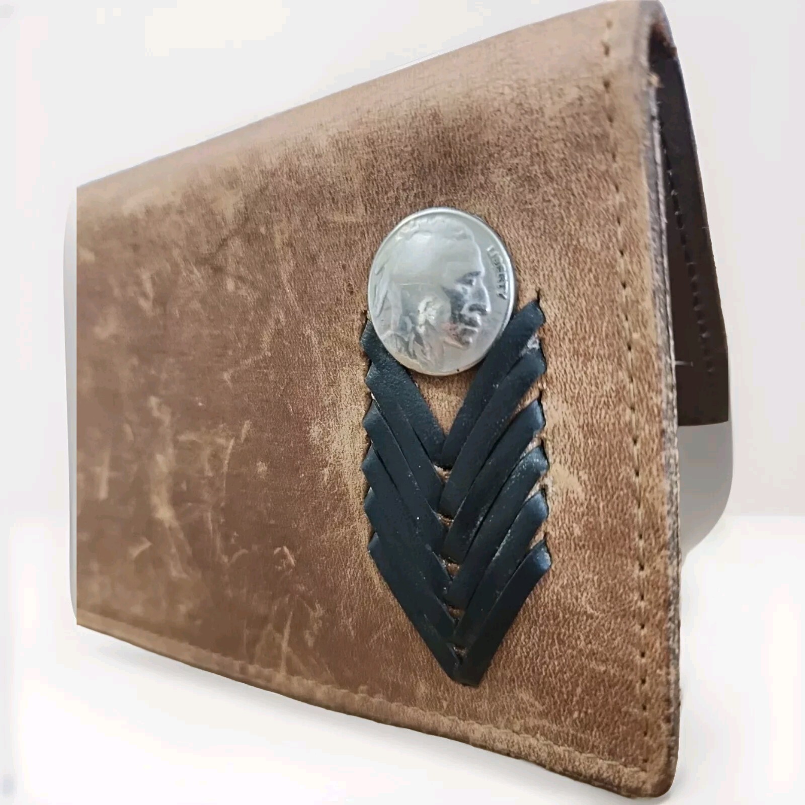 Authentic worn leather and stitching. The wallet measures (closed); 7"L x 3.5"W Refer to pictures for condition (used)
