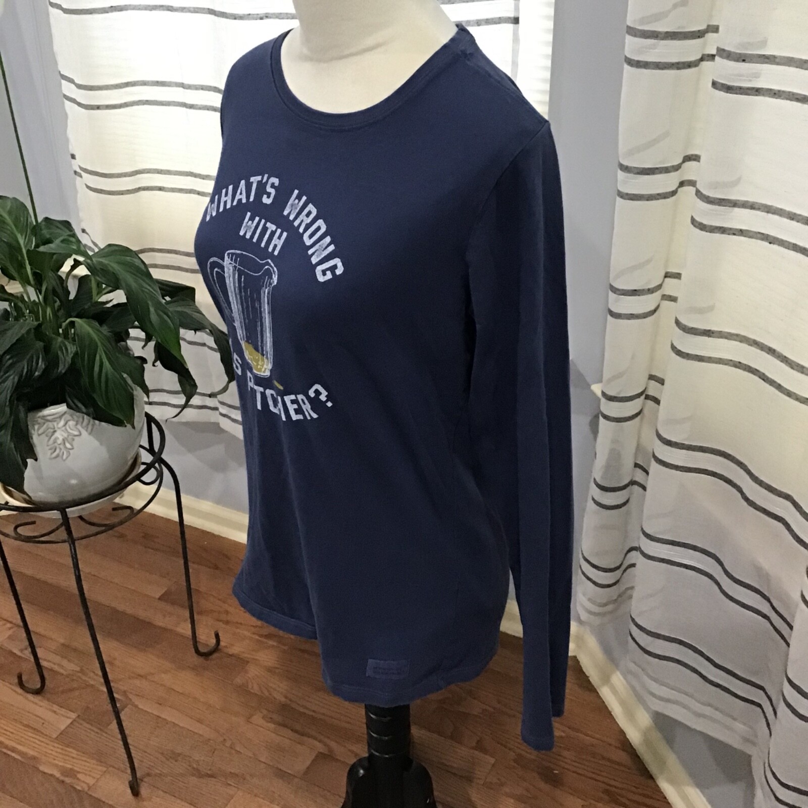 Life Is Food Womens Size Med Crusher Long Sleeve Beer Graphic Shirt Top 100% Cotton Please review pictures for quality of item and additional size info I ship same day via USPS Ground Advantage Thank you for your business!!