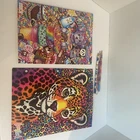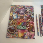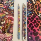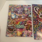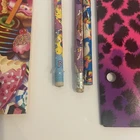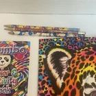 Lisa Frank Hunter Folder 2020- “Ella” erased from pencil as pictured. Lisa Frank Coloring book with 4-5 pictures colored rest unused. By Bendon, 2016. Three vintage 90s pencils in far condition as pictured. Two with no eraser. Some slight scratching as pictured. Yellow dogs.