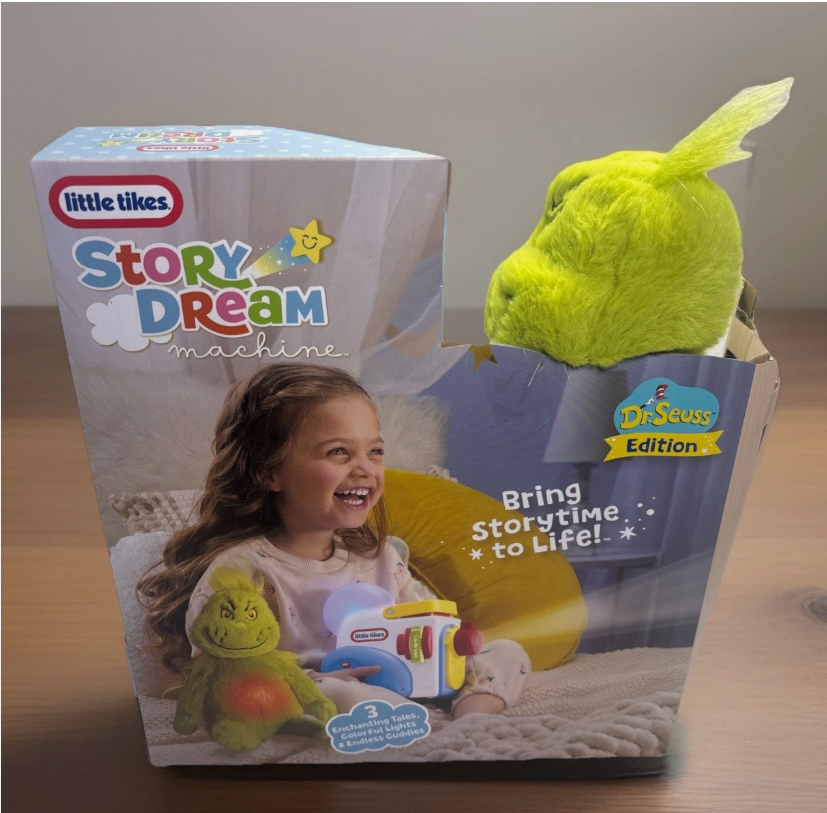 Little Tikes Story Dreamers The Grinch Plush, Storytime Audio Books, Toy Gift, Toddlers, Kids Ages 2-5 Will be shipped within 1 business day Bring Dr. Seuss stories to life with this interactive Grinch plush designed for the Little Tikes Story Dream Machine (projector sold separately). The plush lights up, talks, and reacts to every story for a magical and screen-free bedtime experience. Key Features • Interactive Response: Plush lights up and talks along with each included Dr. Seuss story. • Includes 3 Story Cartridges: Exclusive Dr. Seuss tales made for the Grinch character. • 3 Fun Modes: • Speak Mode – 5 dialogue bites • Music Mode – 7 songs • White Noise Mode – 4 calming sounds • Easy Activation: Press and hold the belly to switch modes when not in story mode. • Educational Play: Supports early reading skills, word recognition, and attention. • Comforting Nighttime Companion: Soft plush with gentle glow effects. • Battery Operated: Uses 3 AAA batteries (included). What’s Included • Grinch Interactive Light-Up Plush • 3 Dr. Seuss Story Cartridges (Story Dream Machine projector sold separately.) Additional Notes • Best performance when plush is within 6 ft of the Story Dream Machine. • Suitable for kids ages 2–5. • Great gift for Dr. Seuss fans and Story Dream Machine collectors. Customer service is our top priority! Please be sure to read the description thoroughly to make sure that this is the item you want before making a purchasing decision. If you have any questions about this item, please contact us via eBay messages before placing your order. We make every effort possible to accurately describe and depict the items. Please be aware that slight variations in color may be due to differences in lighting and computer monitor resolutions. All items are in stock at the time of listing; however, in the unlikely and unforeseen event that we are unable to fulfill your order through any of our networked warehouses, we will notify you as quickly as possible and offer you a 100% refund on your purchase. Thank you for shopping with us. We appreciate your business!