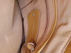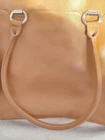 Really great bag in good condition. One small scrape shown in picture. This is a large bag 14 in wide 11 in tall opens up to 5 1/2 in and is 14 in deep. Lots of compartments for just about anything. Lining is 100% polyester. Has 3 top zipper pockets, 1 inside zipper pocket 3 pouch type pockets on the inside and a slid in pocket on the outside. Closed buckle loops hold the handle metal in a gold tone. Magnetic snap close. Lots of space great bag for work or day trip. No rips holes fraying.