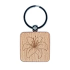Llavero cuadrado de madera grabada con flor de lirio de tigre etiqueta dije