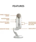 Elevate your home recording experience with the Logitech for Creators Blue Yeti Premium Multi-Pattern USB Condenser Microphone. Crafted by Blue Microphones, this medium diaphragm condenser microphone is designed to deliver professional-quality sound for content creators and enthusiasts alike. The sleek black unit boasts a range of features including an adjustable gain control, built-in headphone jack, mute switch, and stereo capabilities, ensuring versatile use across various audio applications. The Yeti model is a popular choice for those seeking a reliable, wired microphone that can seamlessly connect to a USB port. Its multifunctional design suits it for vocals, instruments, and podcasts, making it an essential piece of equipment for any home recording setup. With its origins in China, this microphone stands as a testament to both quality and innovation in the realm of pro audio equipment. Condition: perfect, like new Please note that the original box is not included.